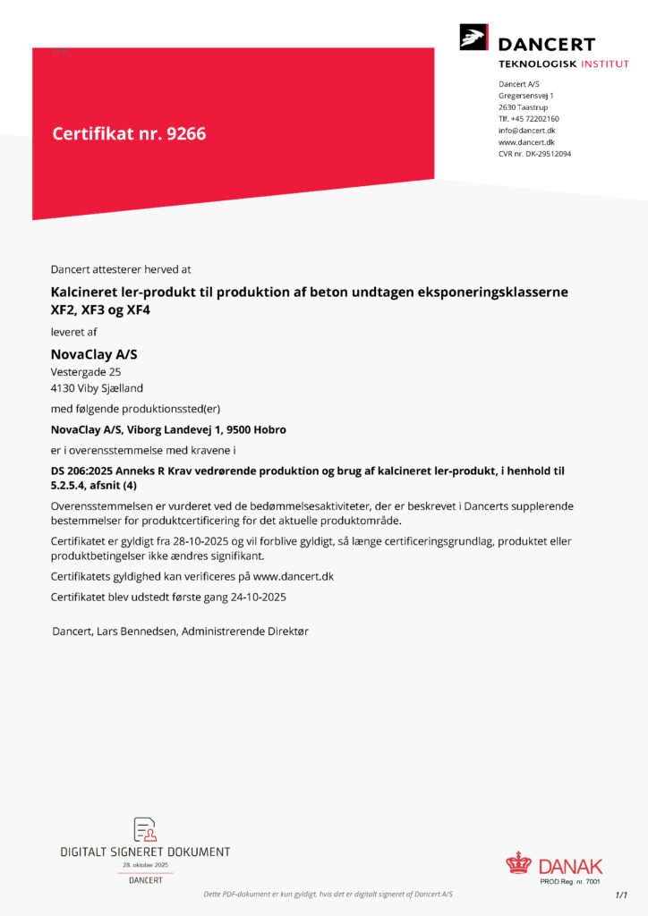 Certifikat 9266Af Jette / 3. november 2025 DS 206:2025 Anneks R Krav vedr. produktion og brug af kalcineret ler-produkt